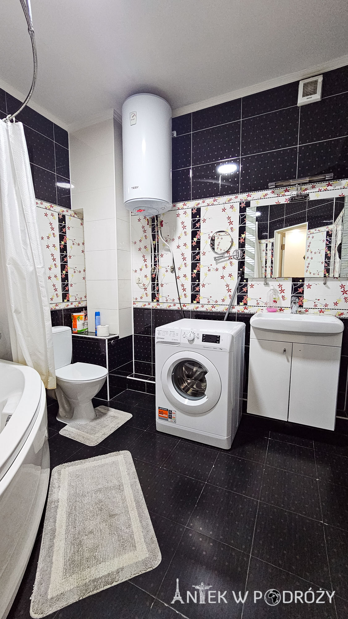 W apartamencie do dyspozycji gości jest duży salon z kuchnią, łazienka i mała sypialnia. Okna do mieszkania są od strony podwórka, dzięki czemu nie ma hałasu z głównej ulicy. Obiekt jest przyzwoity, a właściciel wpuścił nas nieco wcześniej. Trzy noce w tym miejscu kosztowały 2500 lei (525 zł).